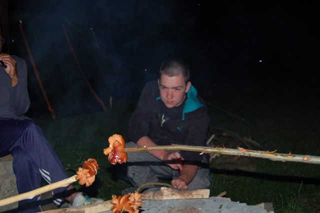 Po příjezdu na místo začal boj o chatky. My, jako zběhlí čtvrťáci, jsme samozřejmě chtěli obsadit to nejlepší, co zde bylo. Ti šťastnější z nás dostali velké chatky pro šest osob, ve kterých je elektřina. Je v nich sice pouze jedna zásuvka, ale na to jsme my vždy připraveni a vozíme s sebou dostatek prodlužovacích šnůr a rozdvojek. I letos jsme jich měli tolik, že se nám podařilo rozvést elektřinu i do několika menších chatek. To nám bohužel profesoři zakázali. Naše velkolepá rozvodná síť byla zničena.